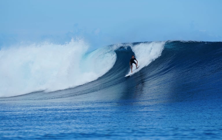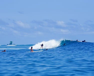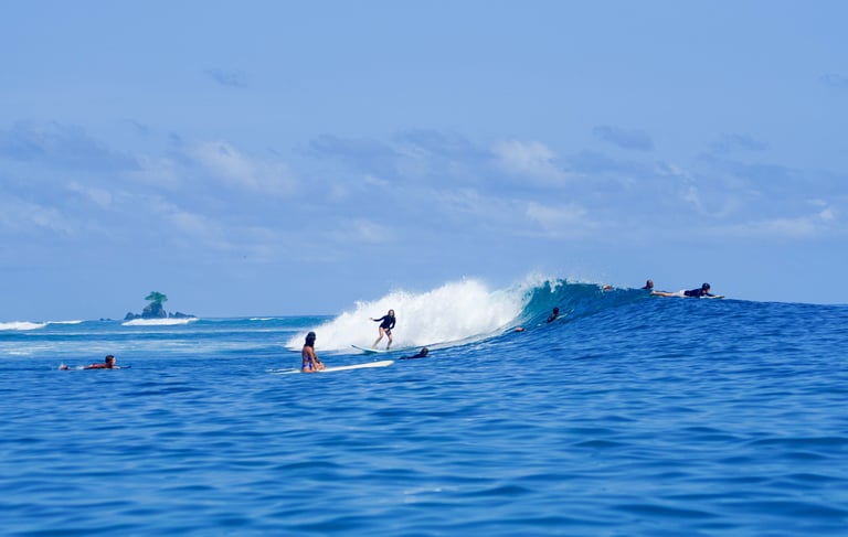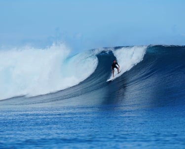 Approximately 40 minutes by boat from Toska. This left picks up more swell than Telescopes and also has some classic barrel sections and rippable walls. Scarecrows is a world class wave when everything comes together. Note: A fuel surcharge may be added for boating here due to the longer distance.